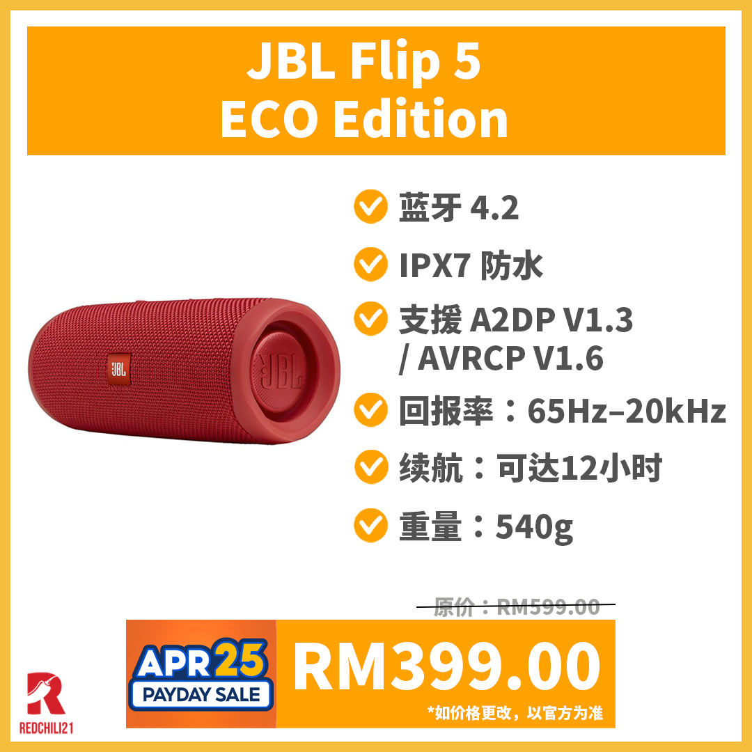 ⑤ JBL Flip 5 ECO Edition 防水蓝牙音箱