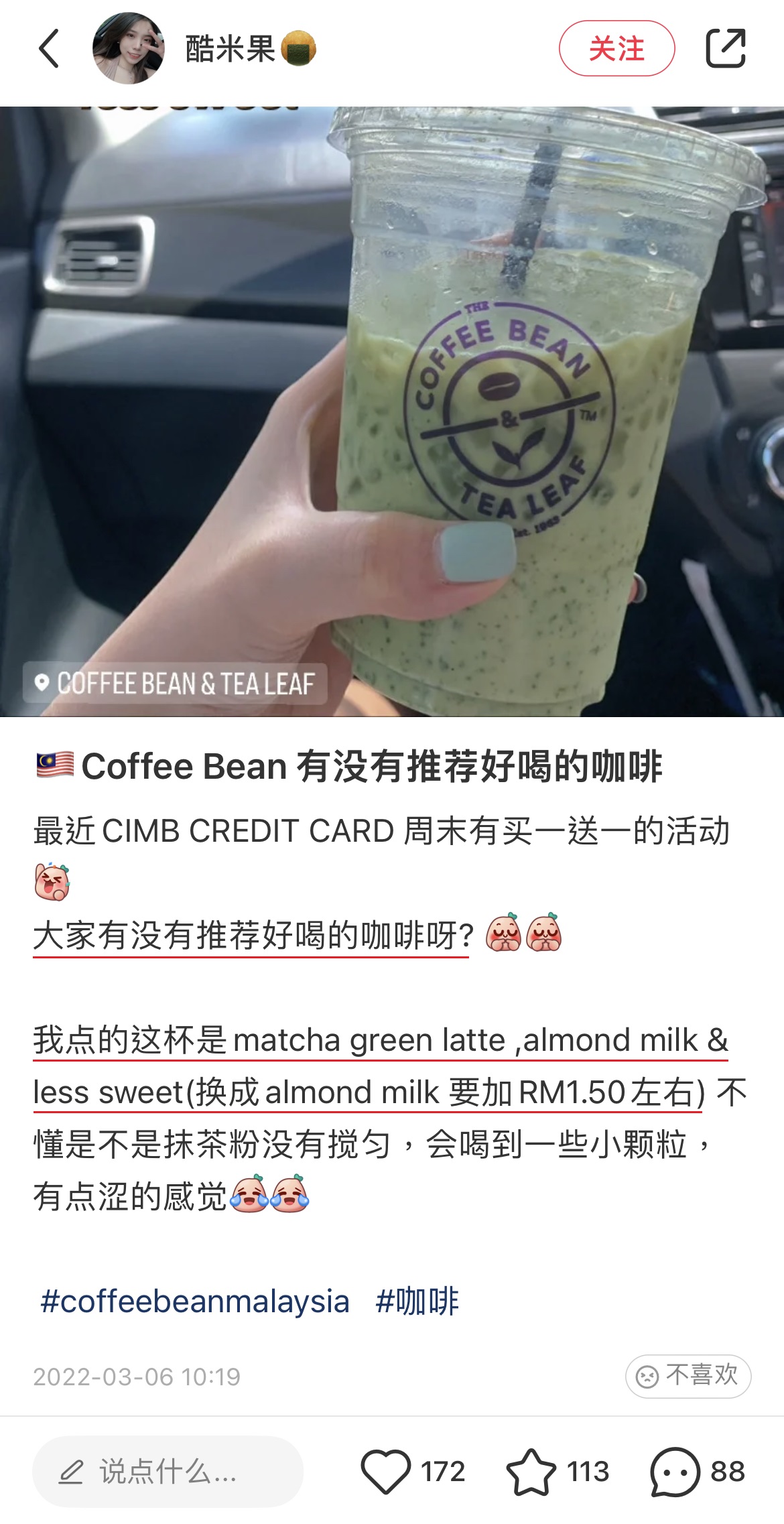 ▼ 博主对于抹茶拿铁的评价: