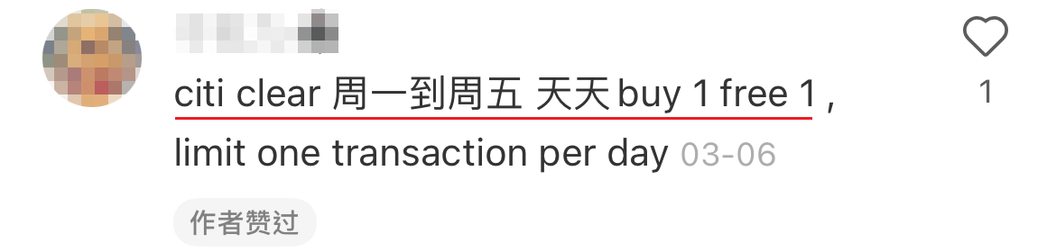 ▼ CITI Bank 信用卡的用户周一至周五都可享有买一送一的优惠!