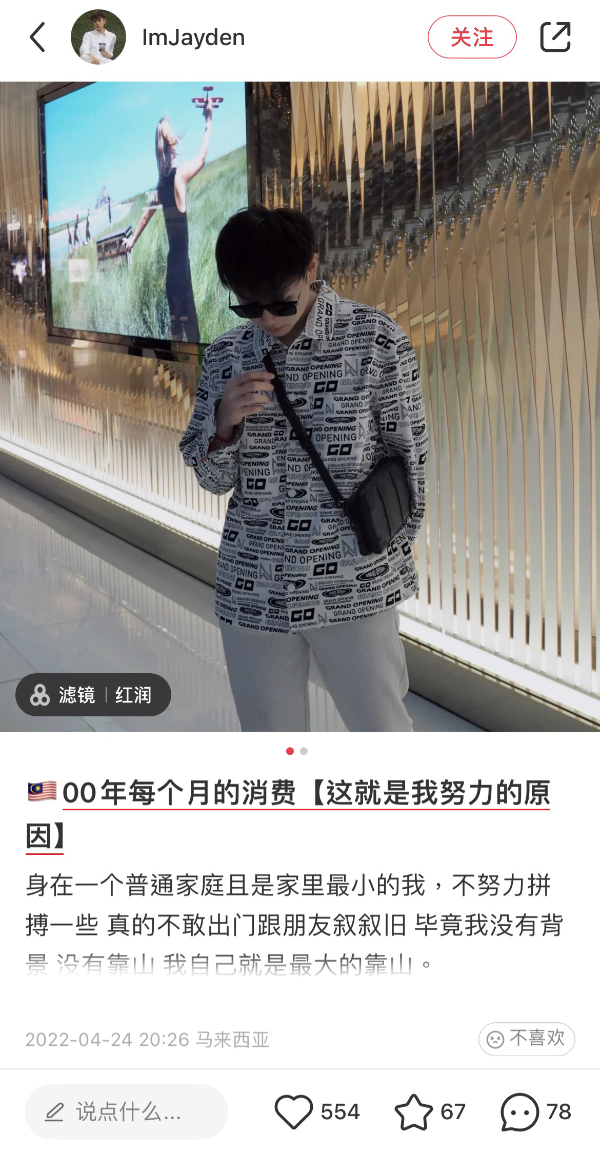 但其实优秀的00后也大有人在!就像这名00后的大马男子 Jayden,虽然不是富二代出生但凭借自己的努力创出一片天,一个月的消费就将近RM40,000。评论区没有任何负面发言反而都是「佩服佩服」!(00后翻篇啦~)