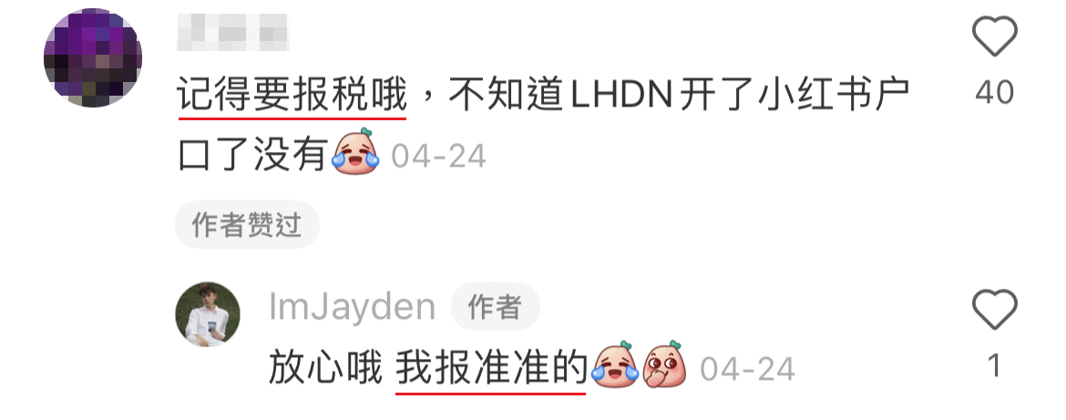 ▼ Jayden 幽默回应:有乖乖在报税哦!