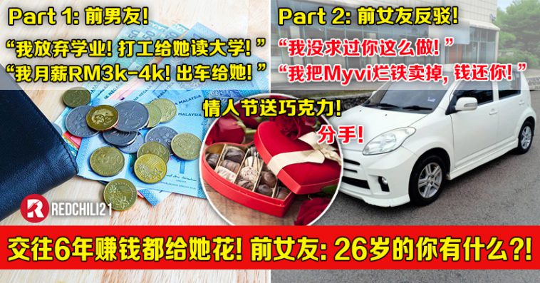 一名大马男子匿名PO文谈及和前女友过去6年的恋爱经历,从大学到出社会工作,赚钱都是为了供她的学费、买车给她用,处处迁就她、尽他所能的满足她要的物质,结果最后还是分手了…