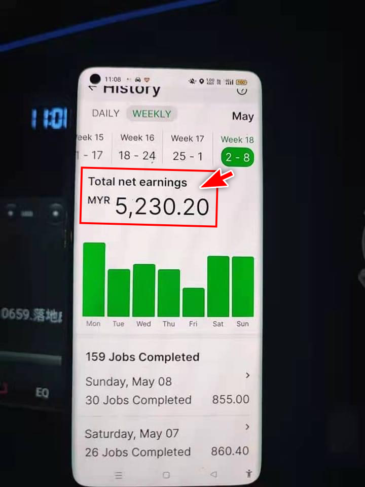 ▼ 人外有人天外有天!这名司机更强!同样的天数他的净收入:RM5,230.20!