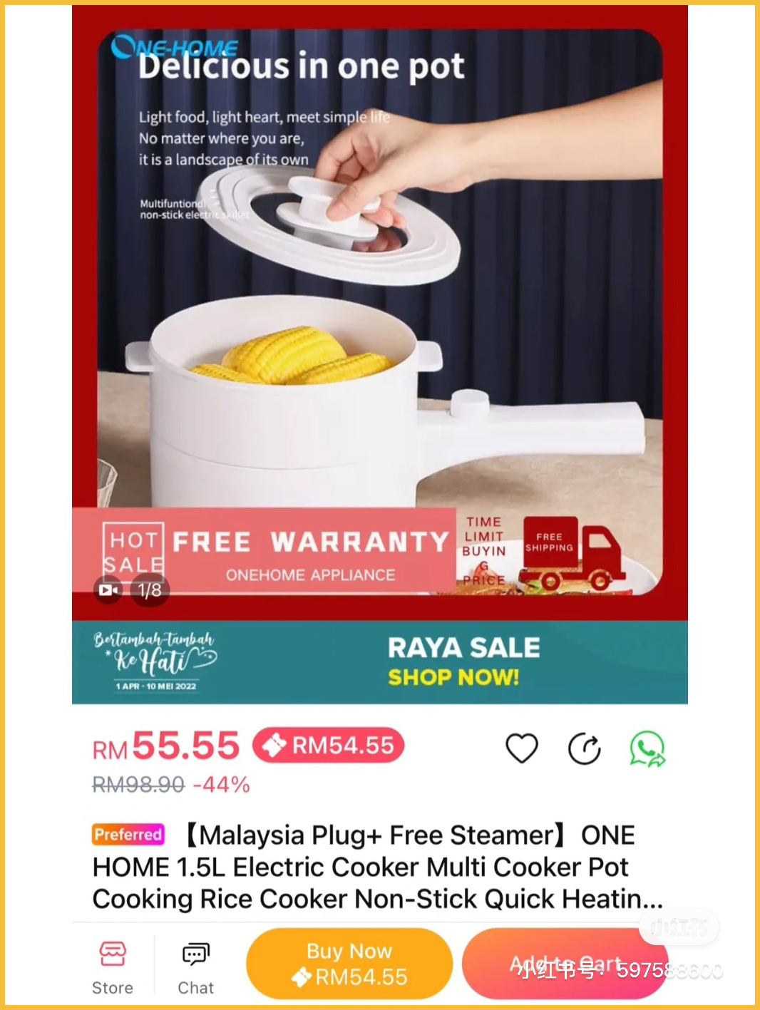 在宿舍心血来潮想自己下厨,就随便去 Lazada 看看有什么锅,是方便让我这个学生党尽快准备午餐的,就让我发现了这个宝藏锅!