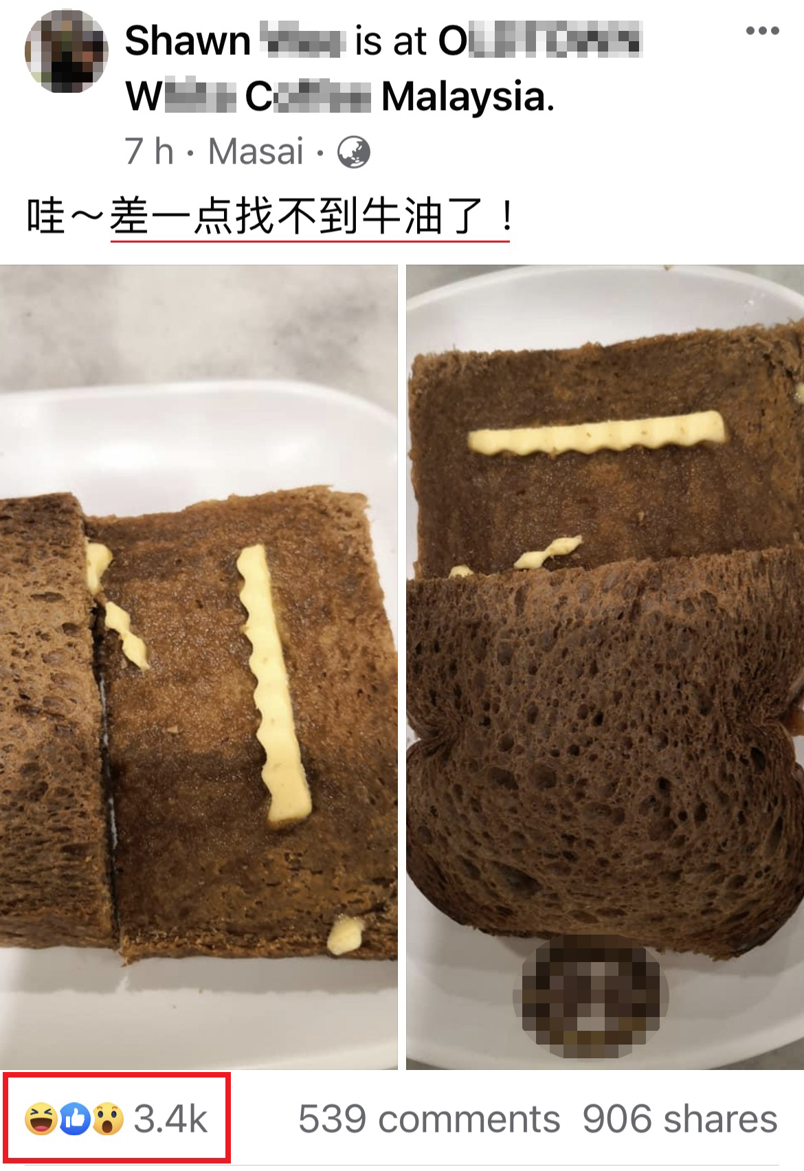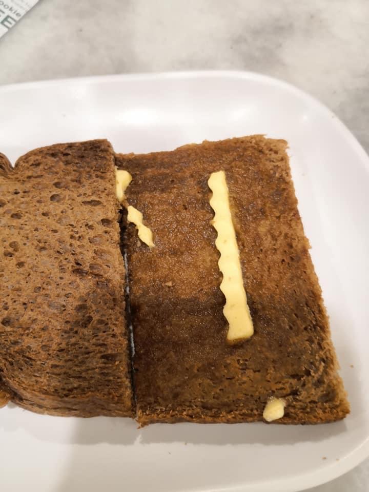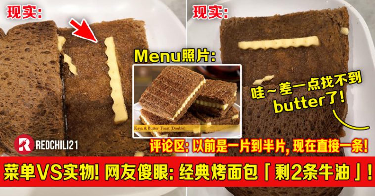 就像这名吃客在大马某家著名连锁餐馆点了他们家的招牌吐司,结果发现夹心的牛油竟然是细细的2条?