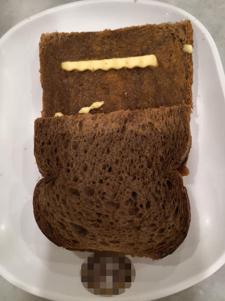 ▼ 直到该名事主日前在店内用餐时点了同款烤面包,才发现和想象中差很多!里面怎么是这样的??