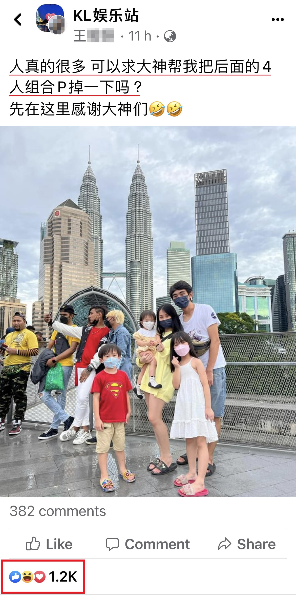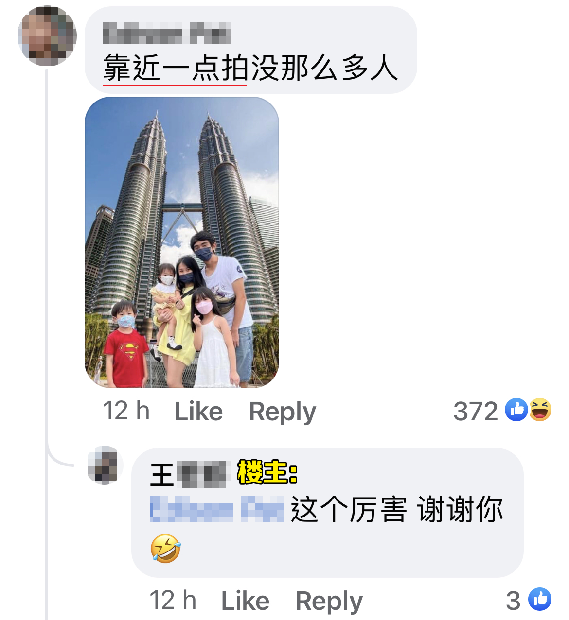 有网友就把照片PO在“KL娱乐站”,请脸书的大神们帮帮忙把后面的“4人组合”P掉,因而展开评论区的精彩留言,网友们纷纷来看热闹,果然评论区不会让人失望!哈哈哈~