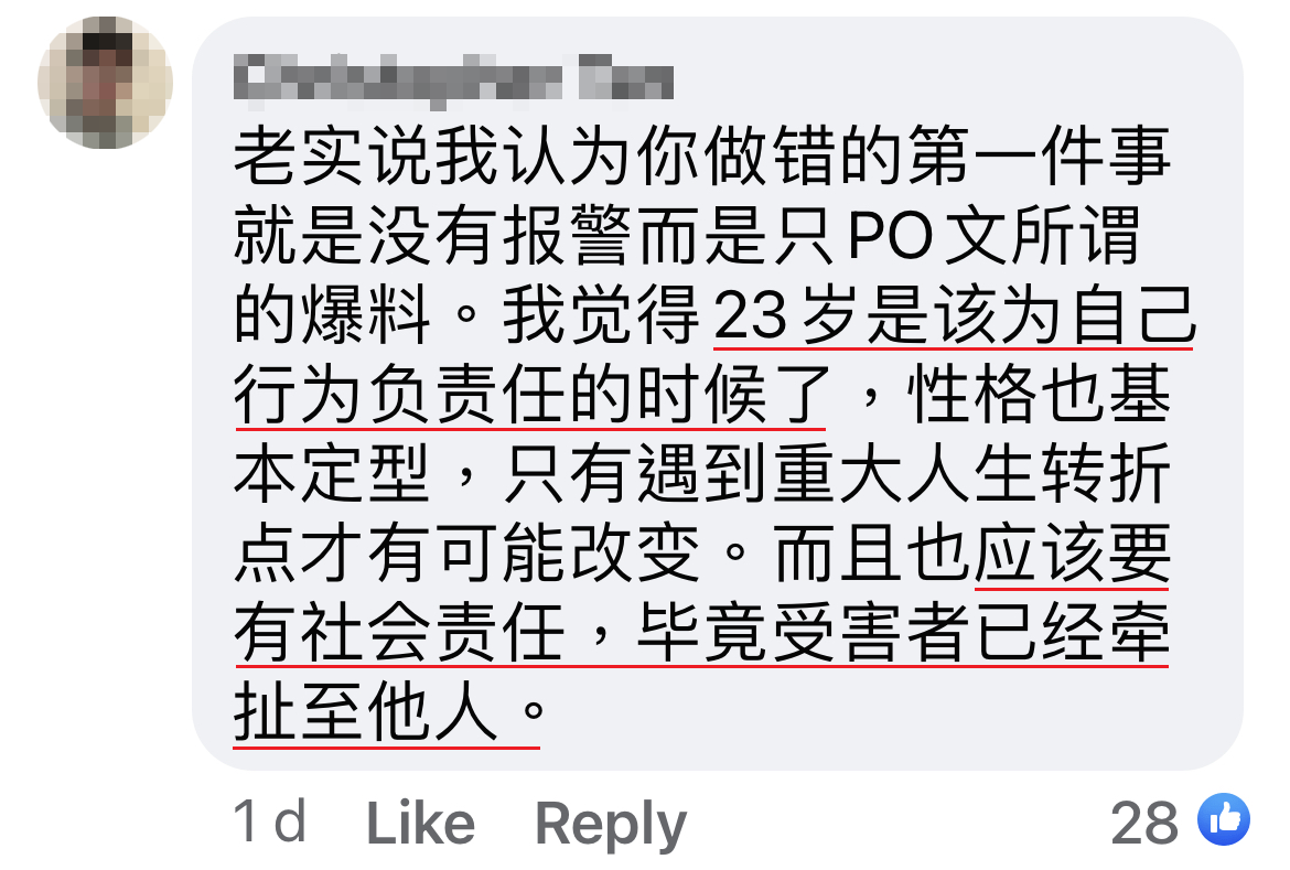 我说这个事情是要大家小心,请大家不要攻击除了他以外的身边人或家人。整个犯案是他一个人做的。