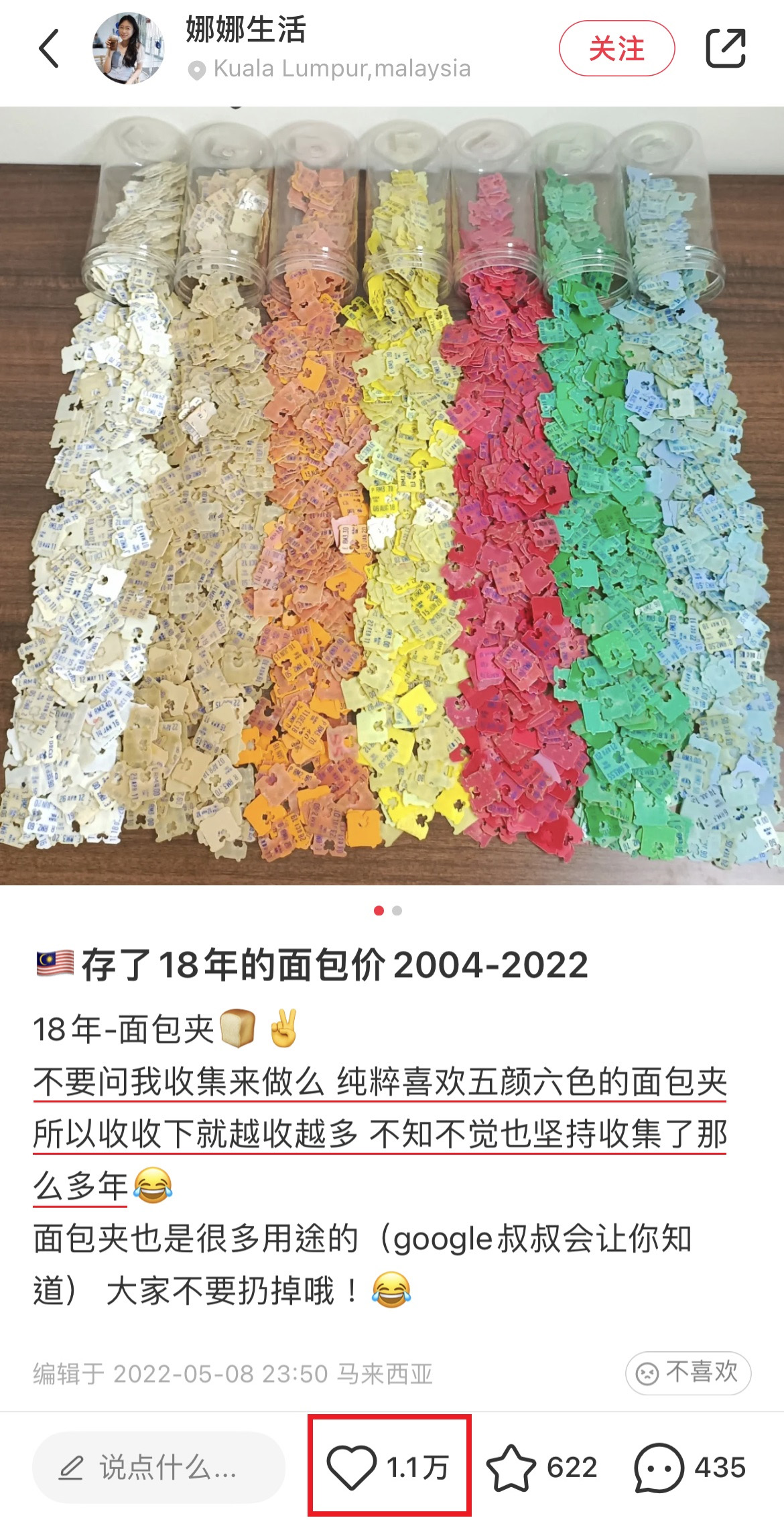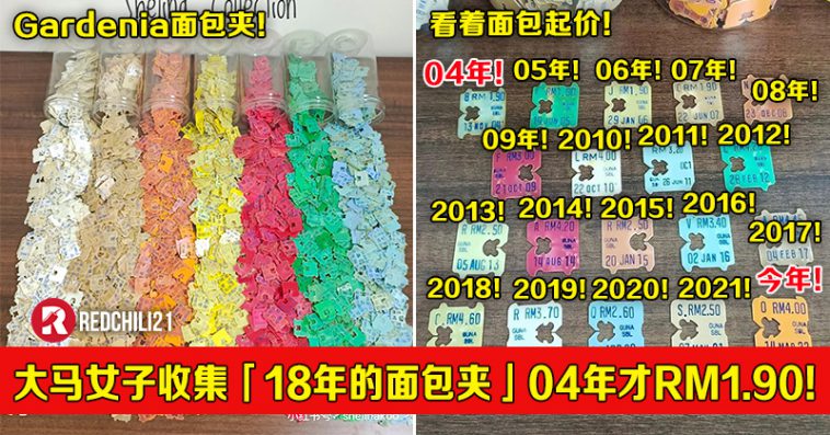 大马女子收集「18年的面包夹」五颜六色超壮观!万人like爆:原来2004年一条白面包才RM1.90!