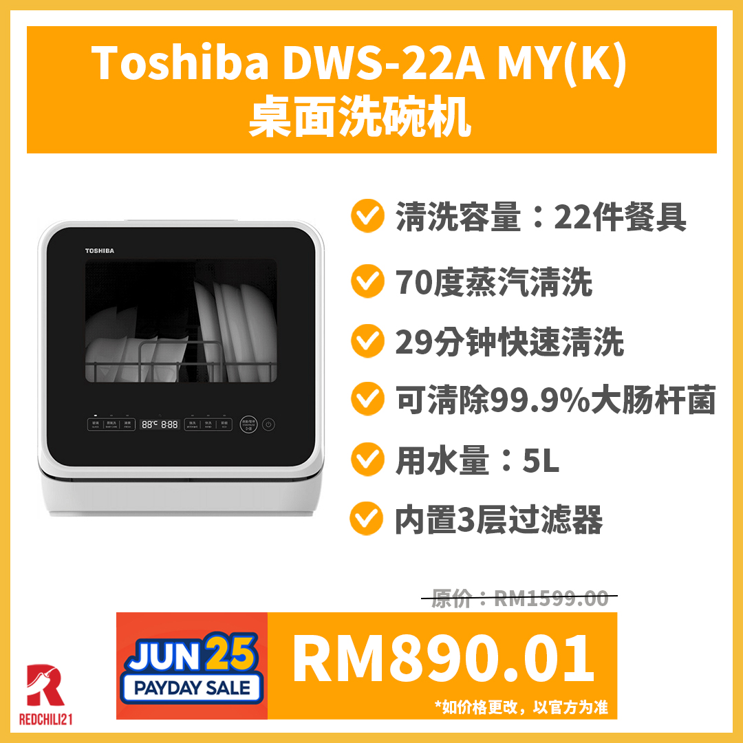 ▪ ② Toshiba DWS-22A MY(K) 迷你桌面洗碗机