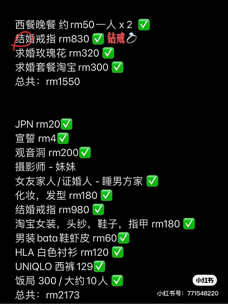 90后求婚+注册花了RM3723