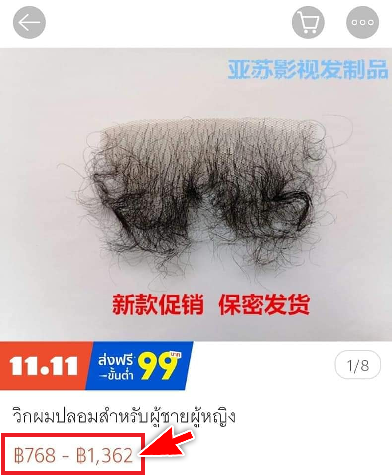 ▼ 另一家 Shopee 商店的价格更是高达768至1,362泰铢(约 RM95-RM168)。看似毫无价值的毛竟然可以卖RM168!
