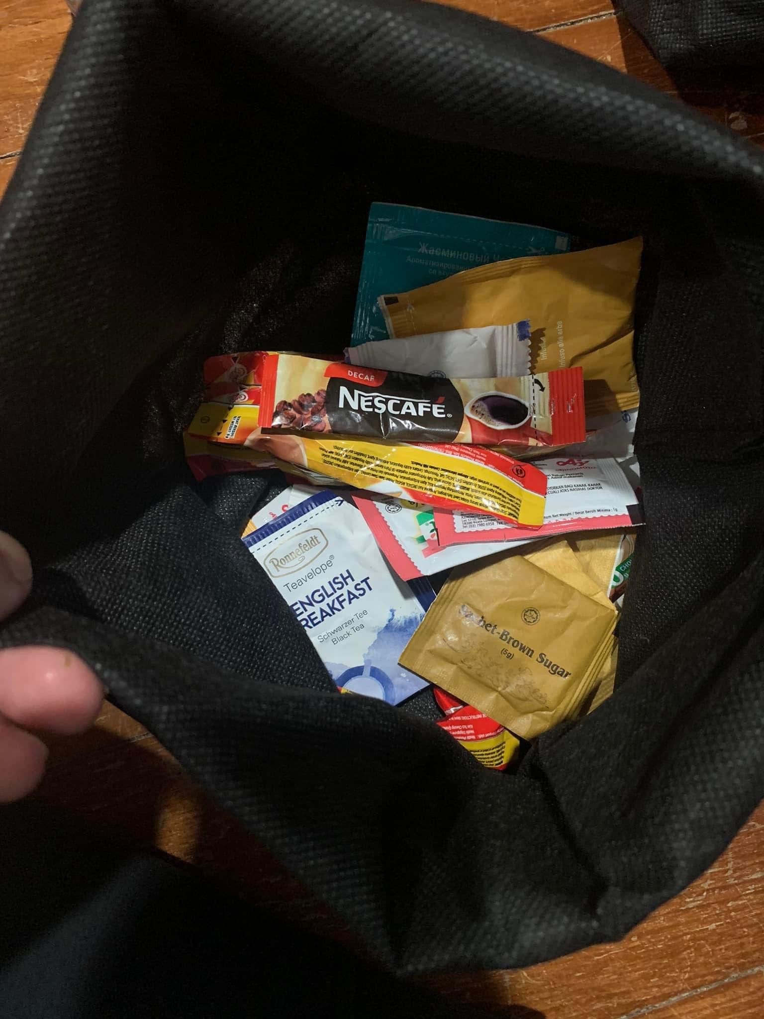 有些人说这样很难看。TMD,已经给了RM500一晚的钱,为什么不能讨这些东西拿回家呢?