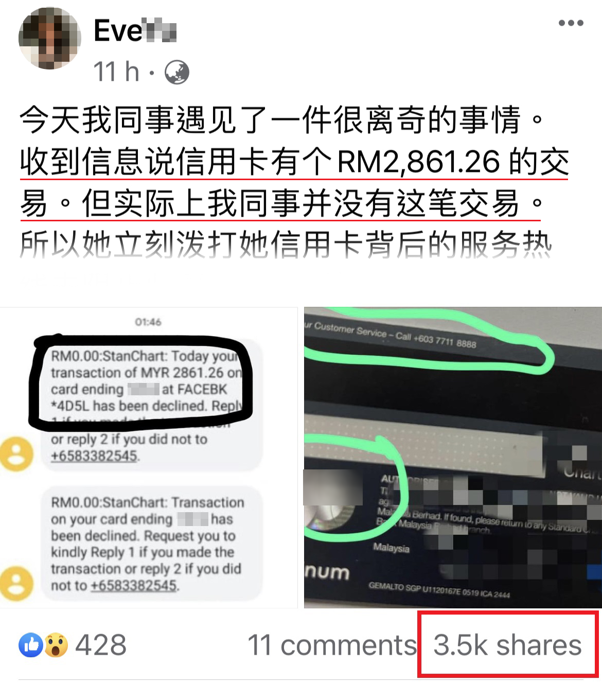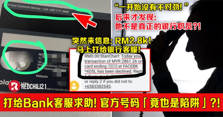 昨晚一名大马网友透过脸书PO文叙述同事的亲身经历,收到扣款的通知信息以后立刻按照信用卡上的热线号码联系银行客服中心求助,万万没想到客服热线的另一头竟然不是银行职员?!