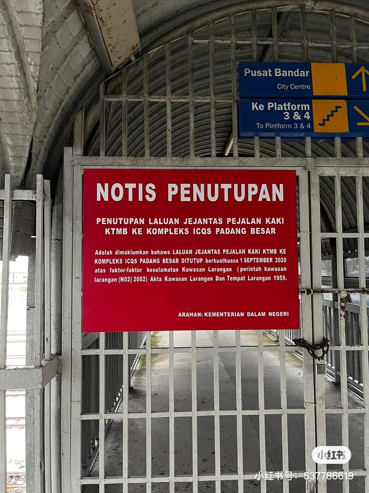 原本 Padang Besar 站有桥可以直接走到马来西亚海关口,警察叔叔说因为 Covid-19 原因,这期间暂时关闭了。PS:但牌子是写说安全的问题所以关闭。