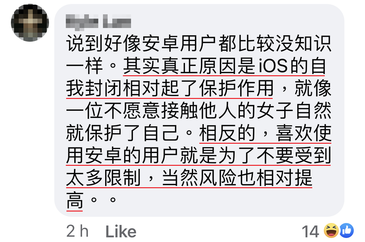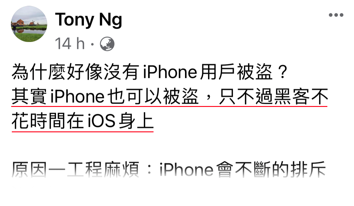 一般使用 iPhone 的用户已经在一个经济能力的范围内,相比安卓低至几百块就有。而黑客一般都是使用一些「贪便宜」的手段来得到信任,进而黑得受害者的帐户,在经济能力较可负担的群族就减少了可骗的机率。