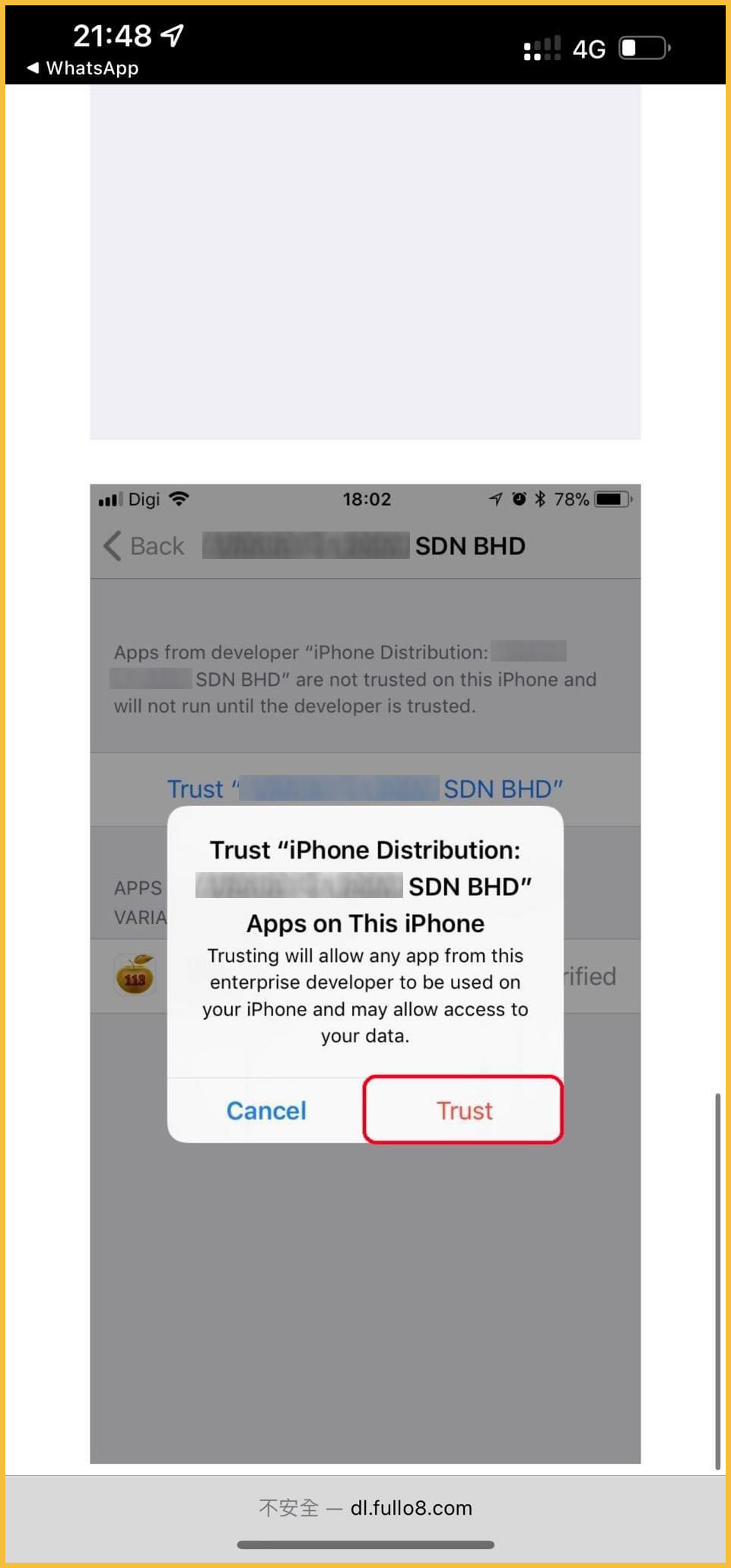 iPhone 会不断的排斥没经过 App Store 下载的 app,下载了过后还要用户在 General > Device Management 里面进行信任才可以使用该软件。
