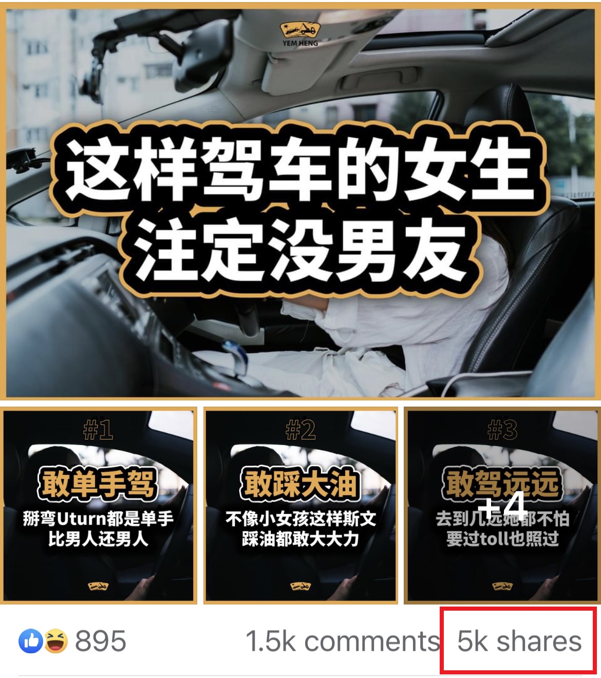 ▼ 其实… 这些 Pattern 早已经是大马女生驾车的常态哦!见怪不怪咯~