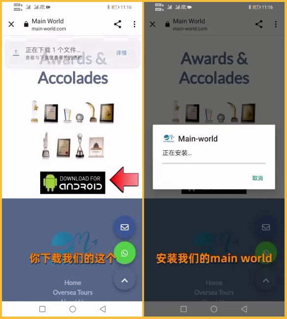 ▼ 进入他们的网站以后,下载一个安卓应用程序。