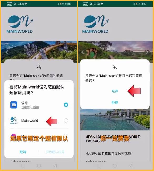 ▼ 整个过程中最关键的一环!默认短信应用和管理通话。