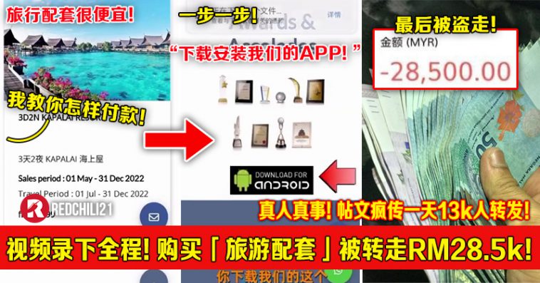 一名脸书网友近日发文分享友人的真实经历,多达RM28,500的银行存款就这样一次过被盗走,整个过程通过截图视频记录下来。最近想在网上预订或购买旅游配套的朋友们,千万要注意!