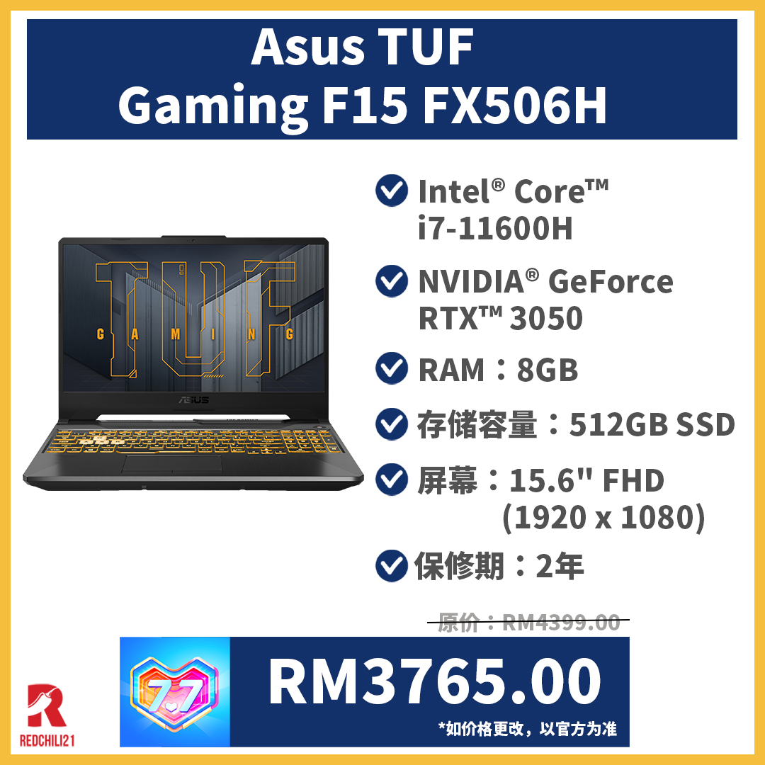 ▪ ① Asus TUF Gaming F15 FX506H 游戏笔记本电脑