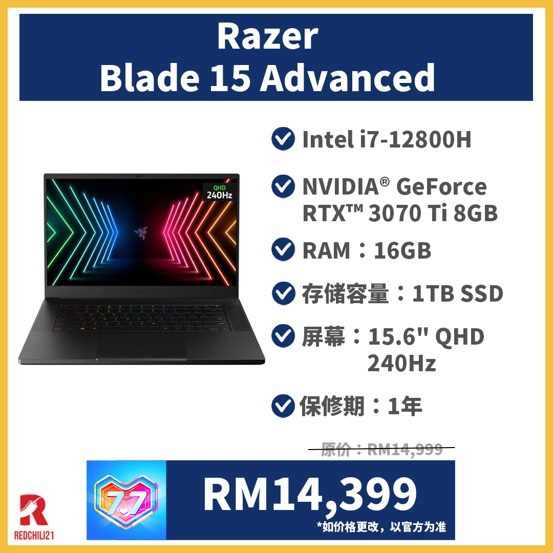 ▪ ⑨ Razer Blade 15 Advanced 游戏笔记本电脑