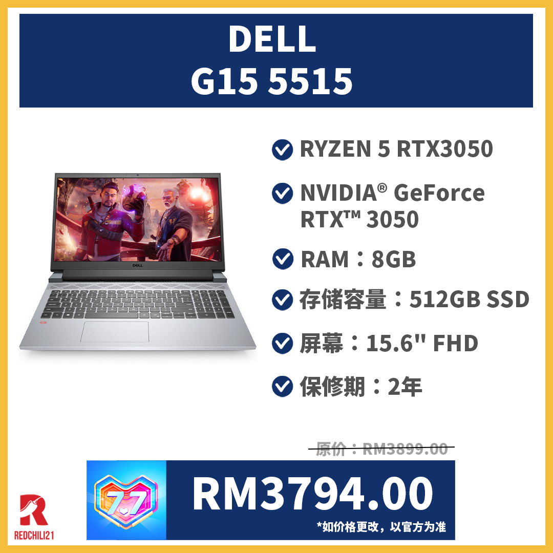▪ ③ DELL G15 5515 R5 RTX Gaming Laptop 游戏笔记本电脑