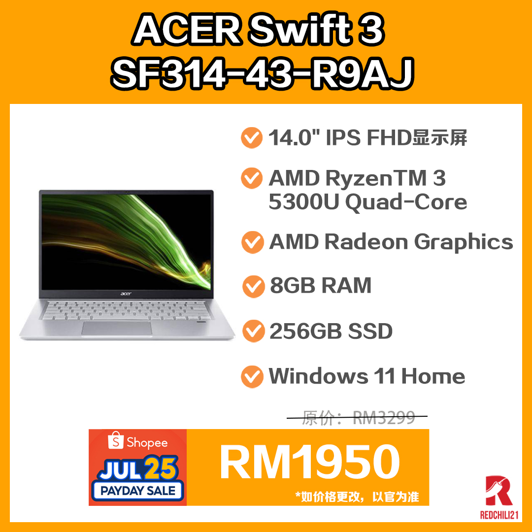 ▪ ③ Acer Swift 3 SF314-43-R9AJ 14” FHD Laptop 笔记型电脑