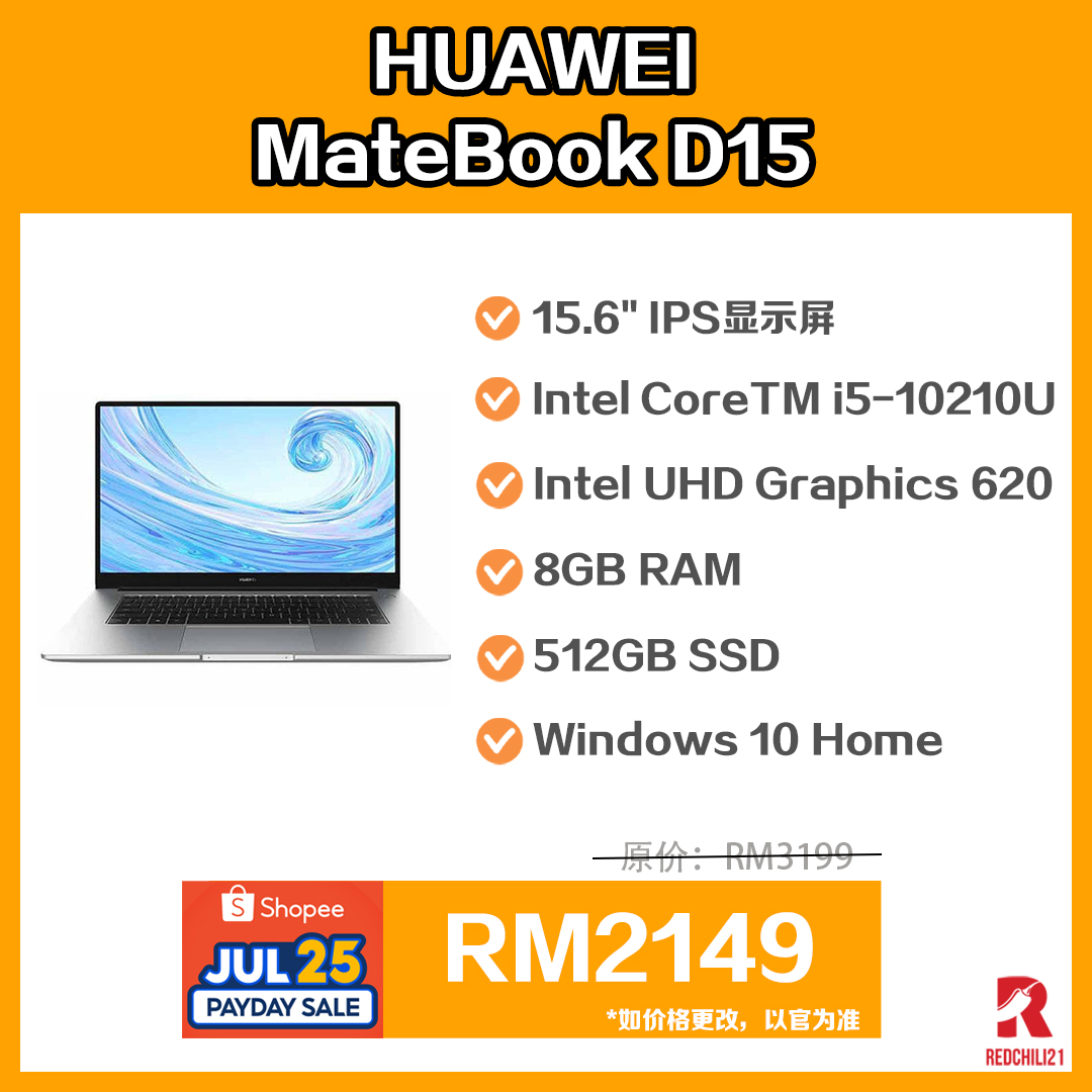 ▪ ⑤ HUAWEI MateBook D15 10th i5 Laptop | Free Backpack 笔记型电脑