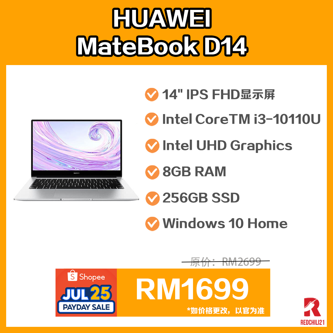 ▪ ⑥ HUAWEI MateBook D14 Laptop | FREE Backpack 笔记型电脑