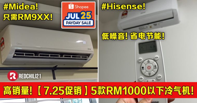 大马人最怕就是热!生活在全年都是夏天的马来西亚,家里不能没有冷气机!今天小编就整理出5款在 Shopee 高销量的冷气机,这次7月25日促销更便宜,统统只需不到RM1000就能入手!