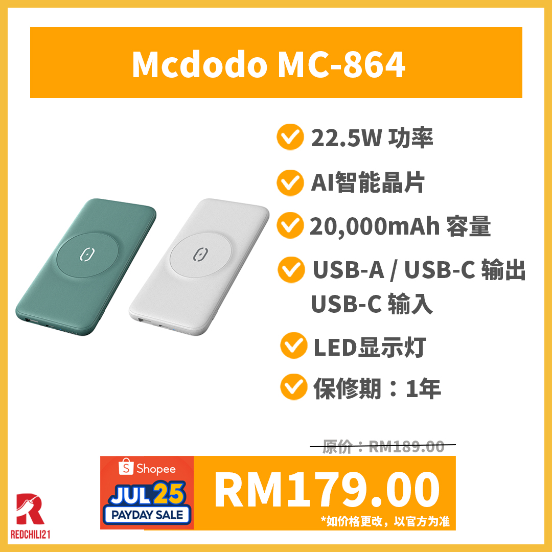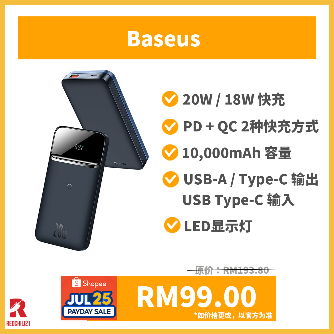 以下7款在 Shopee 高销量又高好评度的快充版充电宝,最低只需不到RM60哦!这次7月25日还有更便宜的优惠价呢!