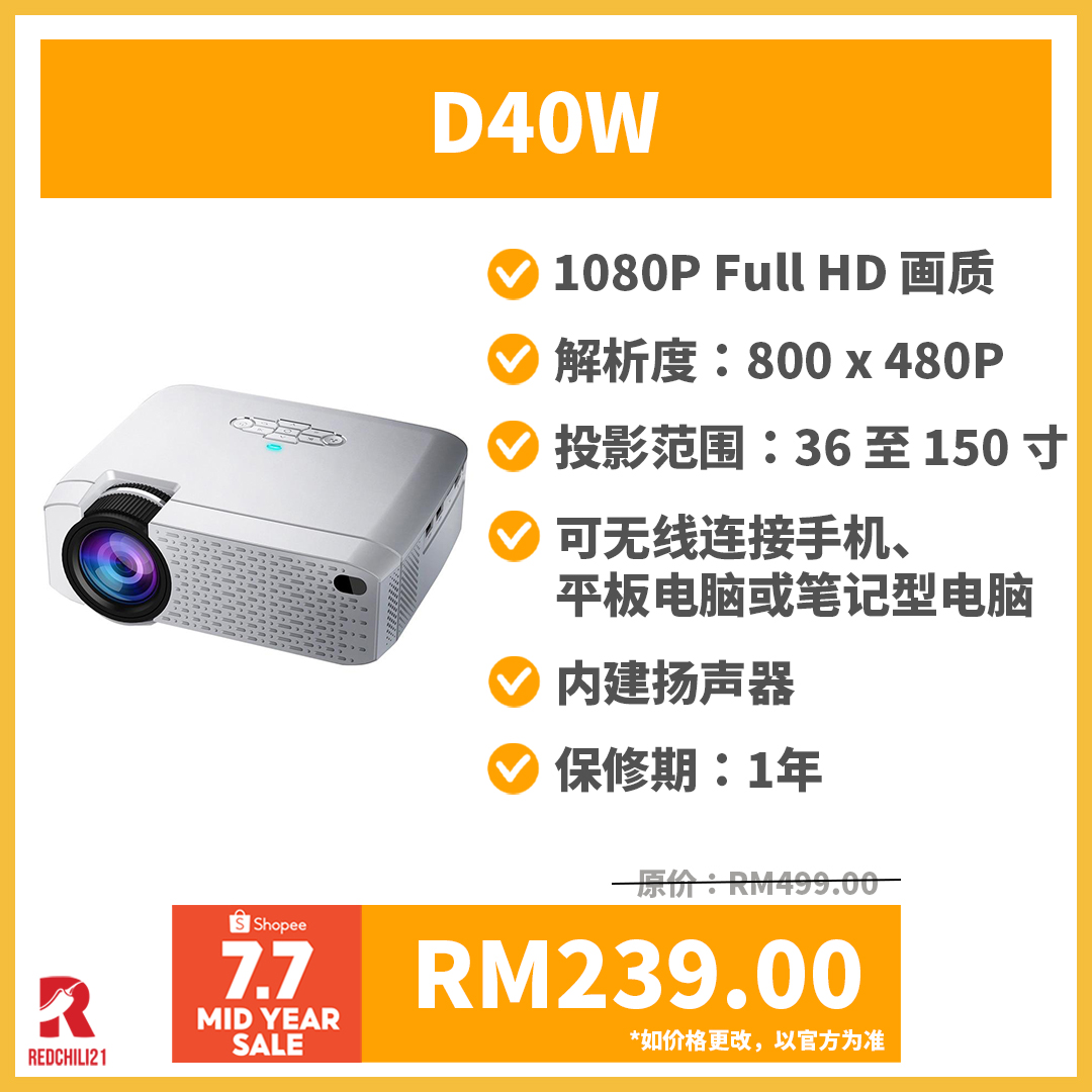 ▼ ③ D40W LED HD Wireless Projector 投影仪