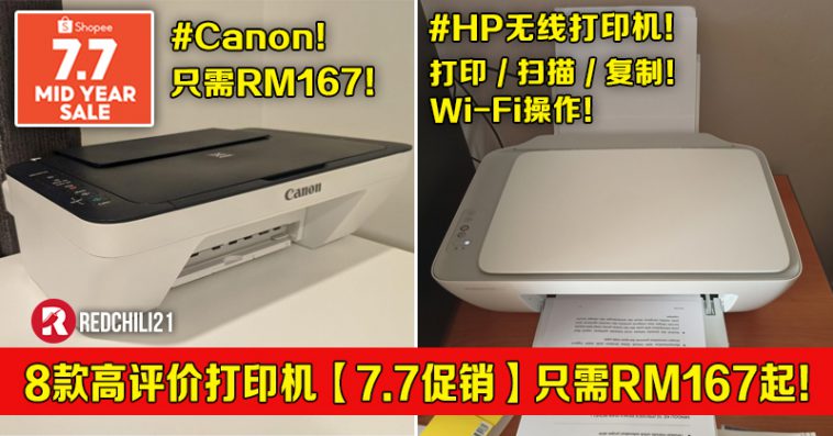 家里的 Printer 坏了还是太老旧了?不如趁着这次 Shopee 7.7年中大促销,入手一台全新的吧!8款好评度超高的打印机最低只需RM167!