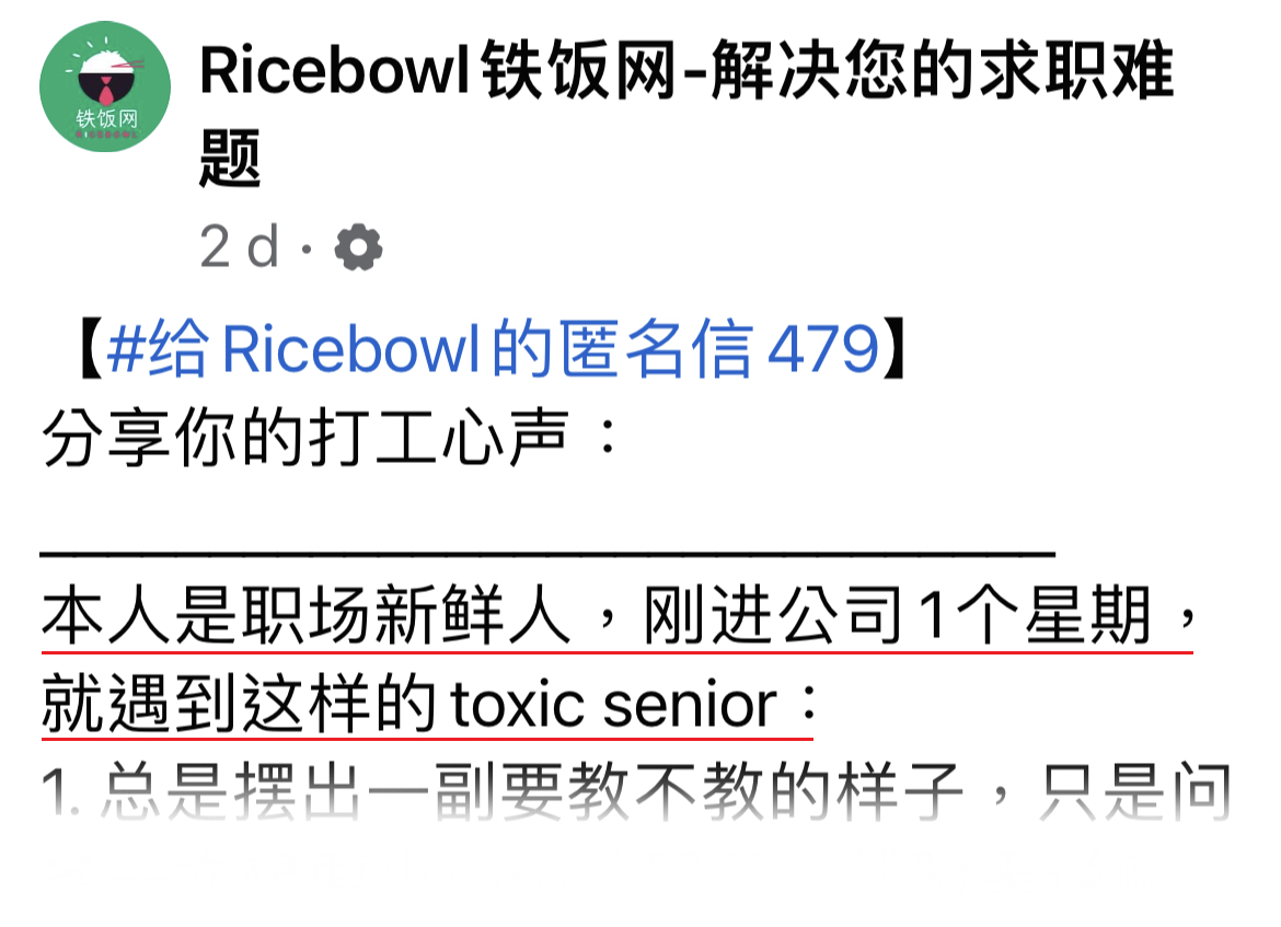 本人是职场新鲜人,刚进公司1个星期,就遇到这样的 toxic senior: