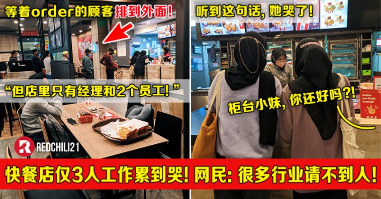该话题在网上掀起讨论以后,另一名网友就分享了他亲眼所见的真实情况,快餐店大排长龙然而店里工作的就只有3个人….