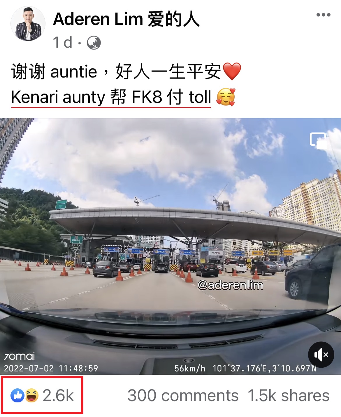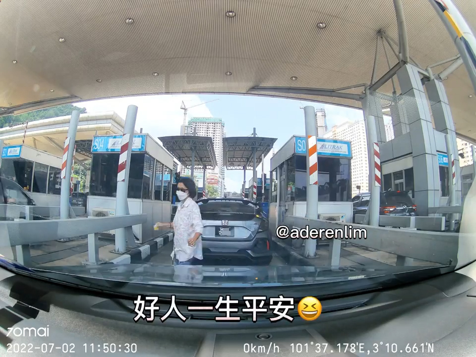 近日一段分享自大马网友的视频在脸书流传,视频中一辆名贵豪车的车主到了收费站才发现不够钱“过 Toll ”,后方的车主 Aunty 及时下车搭救,霸气地帮他付了过路费!