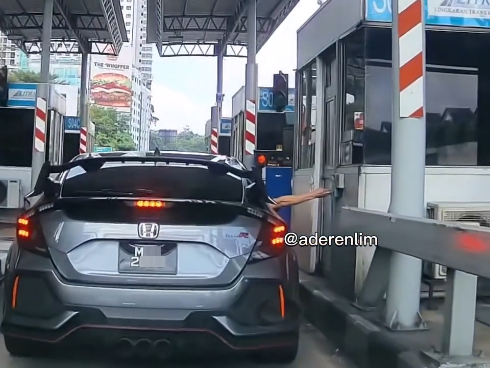 ▼ 车主开着帅气的 Honda FK8 进入 Touch ‘n Go 收费站,“滴”一下才发现:TNG 卡不够钱!不能过!