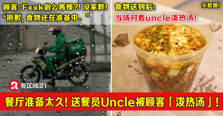 餐厅准备食物太久!大马送餐员Uncle「被店家骂又被顾客泼热汤」一身烫伤!