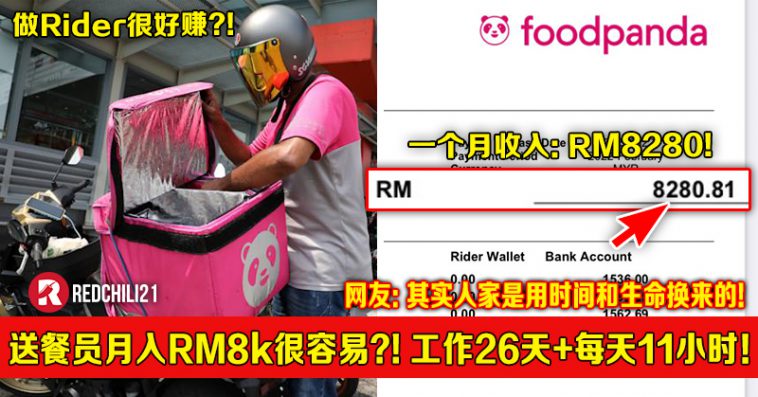 自从外卖服务在马来西亚越来越盛行以后,网上不时会看到“送餐员的收入很不错”之谣言,早前就一名送餐员曝光自己的一个月收入多达RM18k,但这个行业真的这么好赚吗?不见得哦!