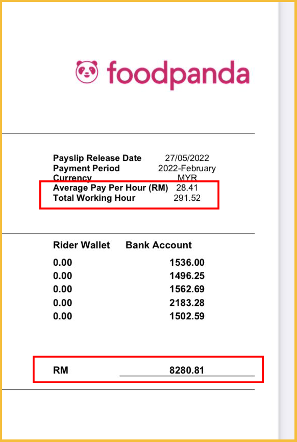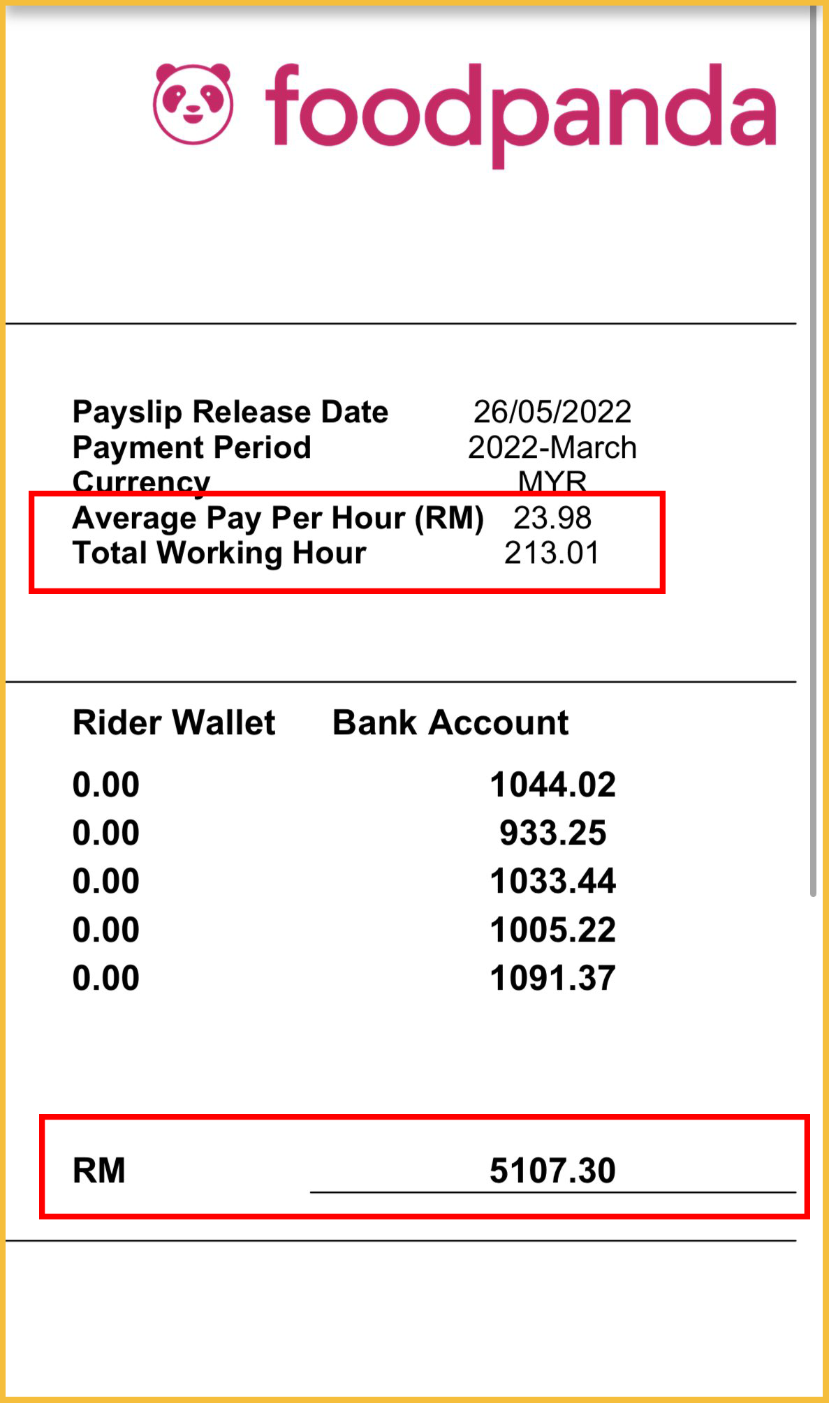 Slip gaji rider Foodpanda bulan 3. Kata rider, ciduk dengan tenang, tak langgar lampu merah. Cuma pinggang + motor kena rajin servis.