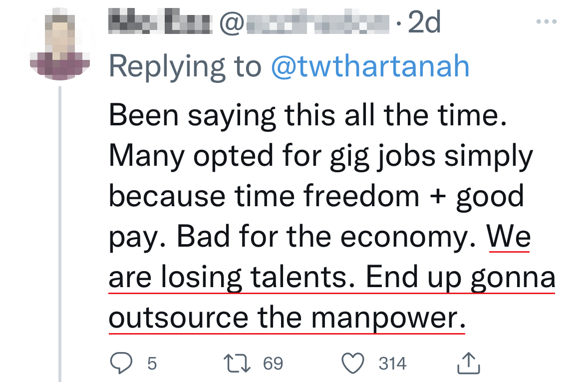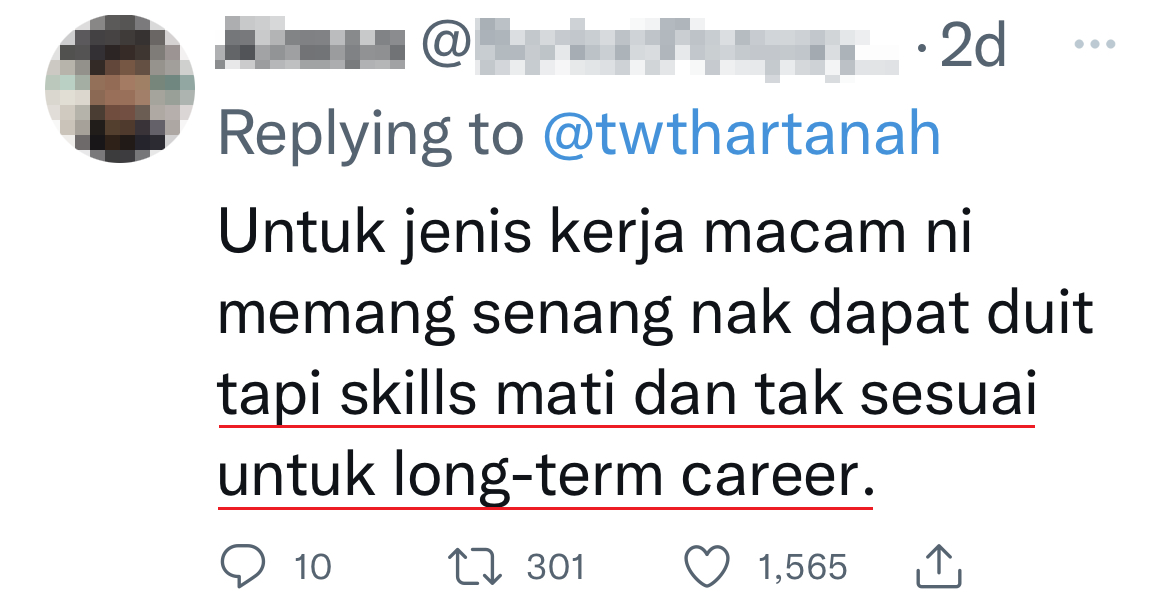 ▼ 很多网友则在 Twitter 原文下方留言分享自己的看法:这个行业虽然可以赚钱但没有未来发展的可能性,还是需要有另一个长远的职业规划。
