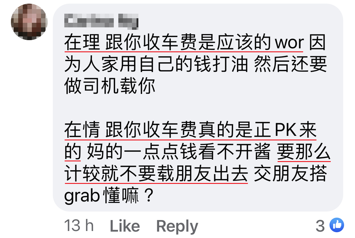 ▼ 欠债是朋友的事,但收取RM10车油费没有错哦!