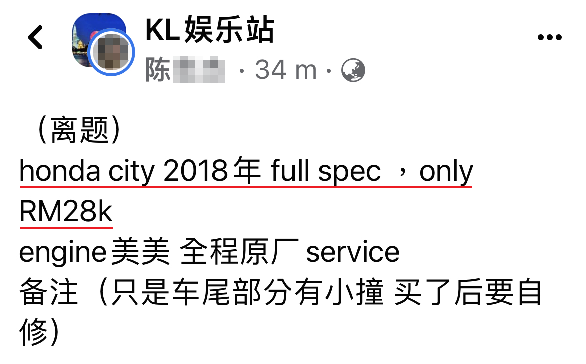 ▼ 重点来了!帖文中提到的「只是车尾部分有小撞,买了后要自修」原来是这么一回事…..