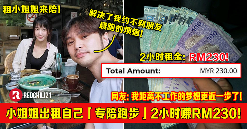大马小姐姐出租自己「专陪跑步」2小时竟赚RM230!网友:我距离不工作的梦想更近一步了!
