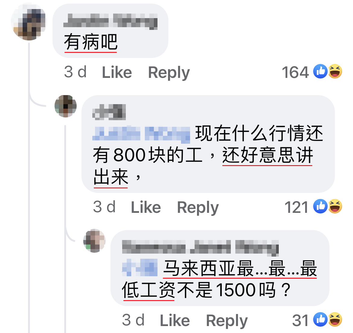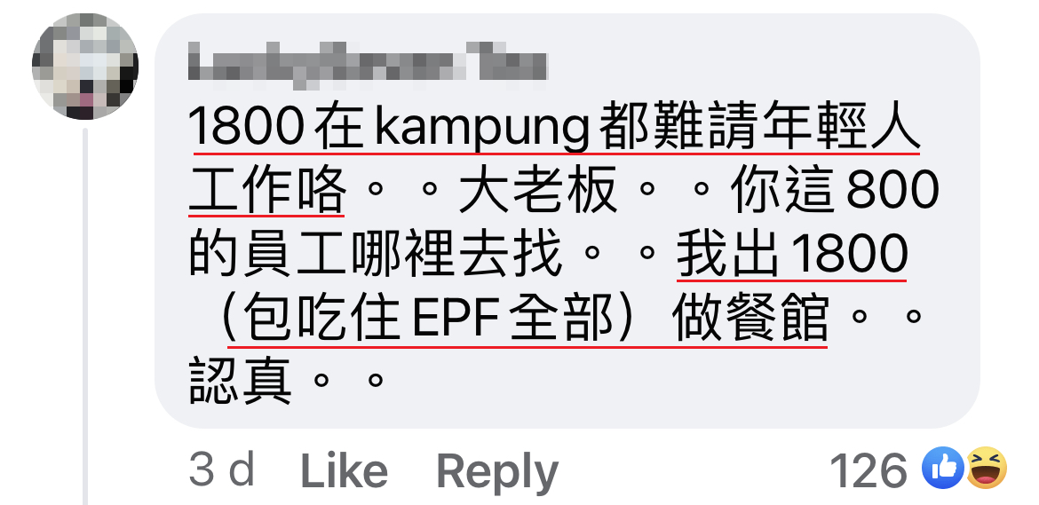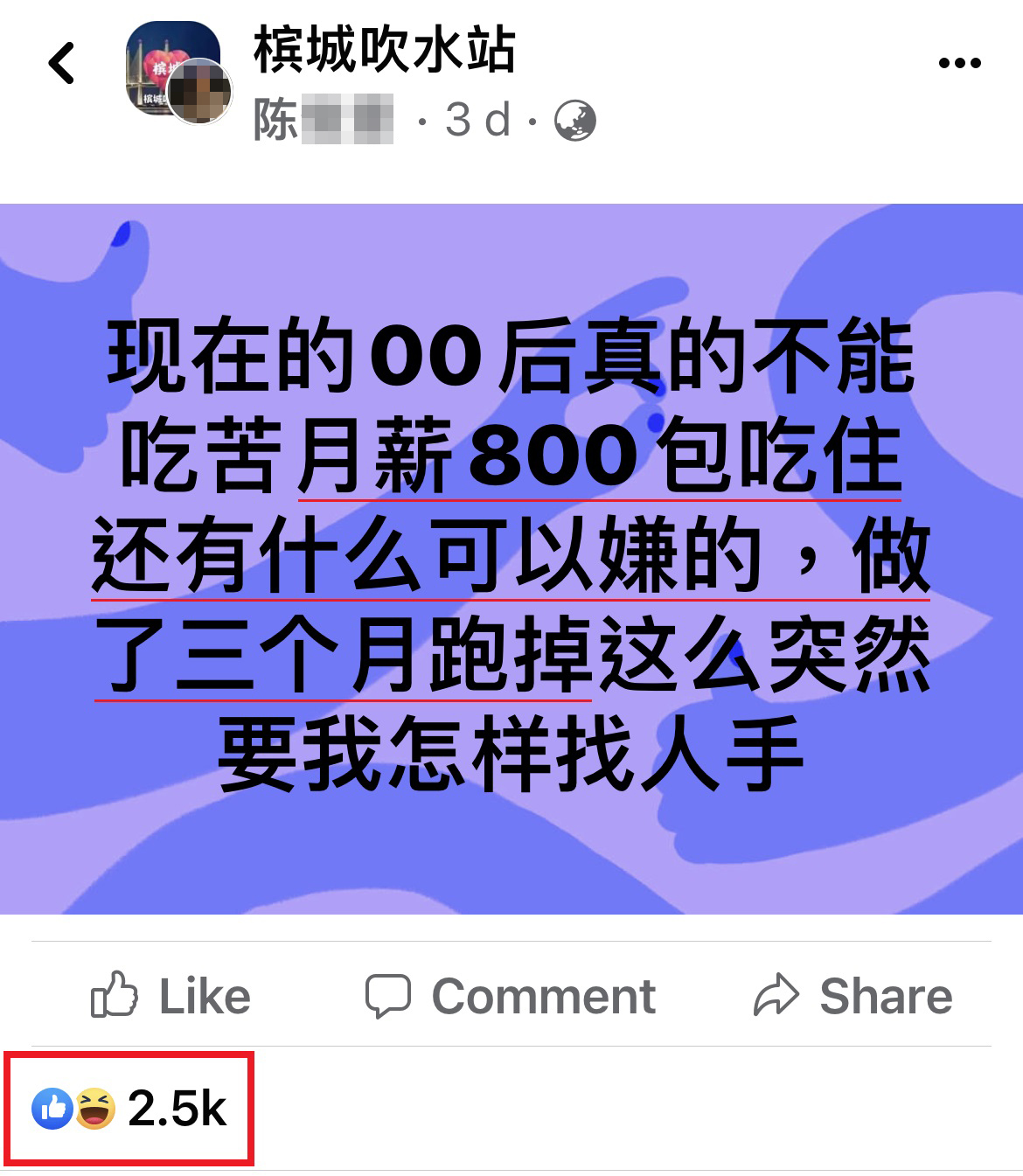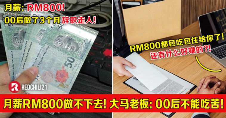 近日一名老板在“槟城吹水站”发帖,声称自己给的薪资RM800包括提供食物和住宿,00后员工入职3个月后却突然辞职不干了让他十分火大。他认为待遇已经足够好,是年轻人不知感恩还挑三拣四,嫌薪水太低。
