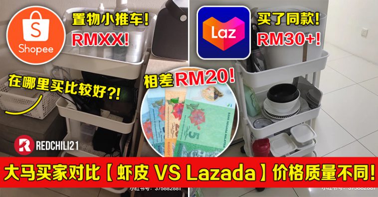 大马买家做对比【Shopee VS Lazada各买同款】置物小推车!价钱相差RM20质量不同!