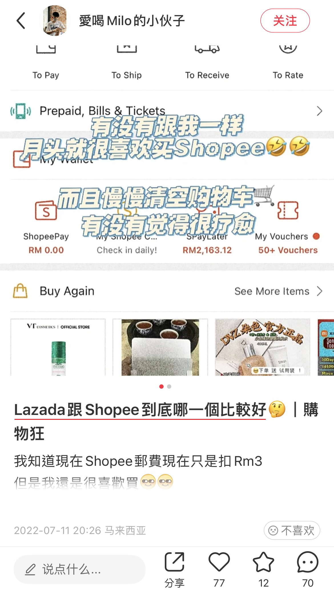 我知道现在 Shopee 邮费现在只是扣RM3,但是我还是很喜欢买。我知道很多人从 Shopee 跳去 Lazada 了,但是有个很好笑的是,我连 Lazada 都没有下载过,更加別说用 Lazada 买东西了。