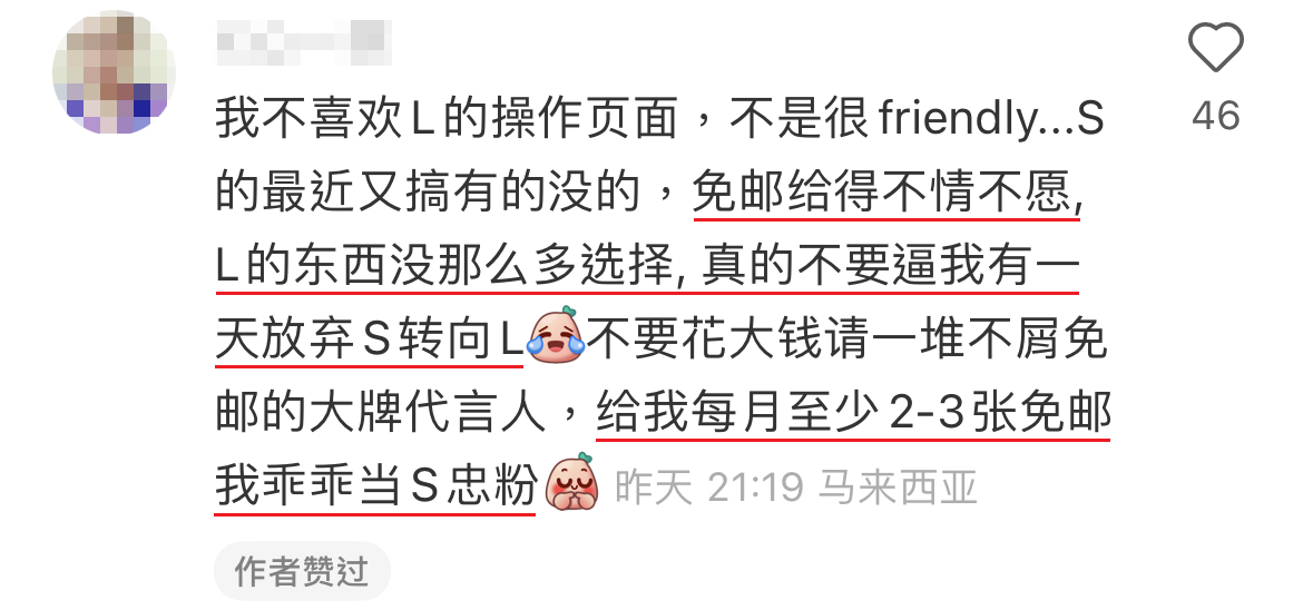 ▼ 最近似乎有不少人因为免邮券等因素,失望“转台”了…